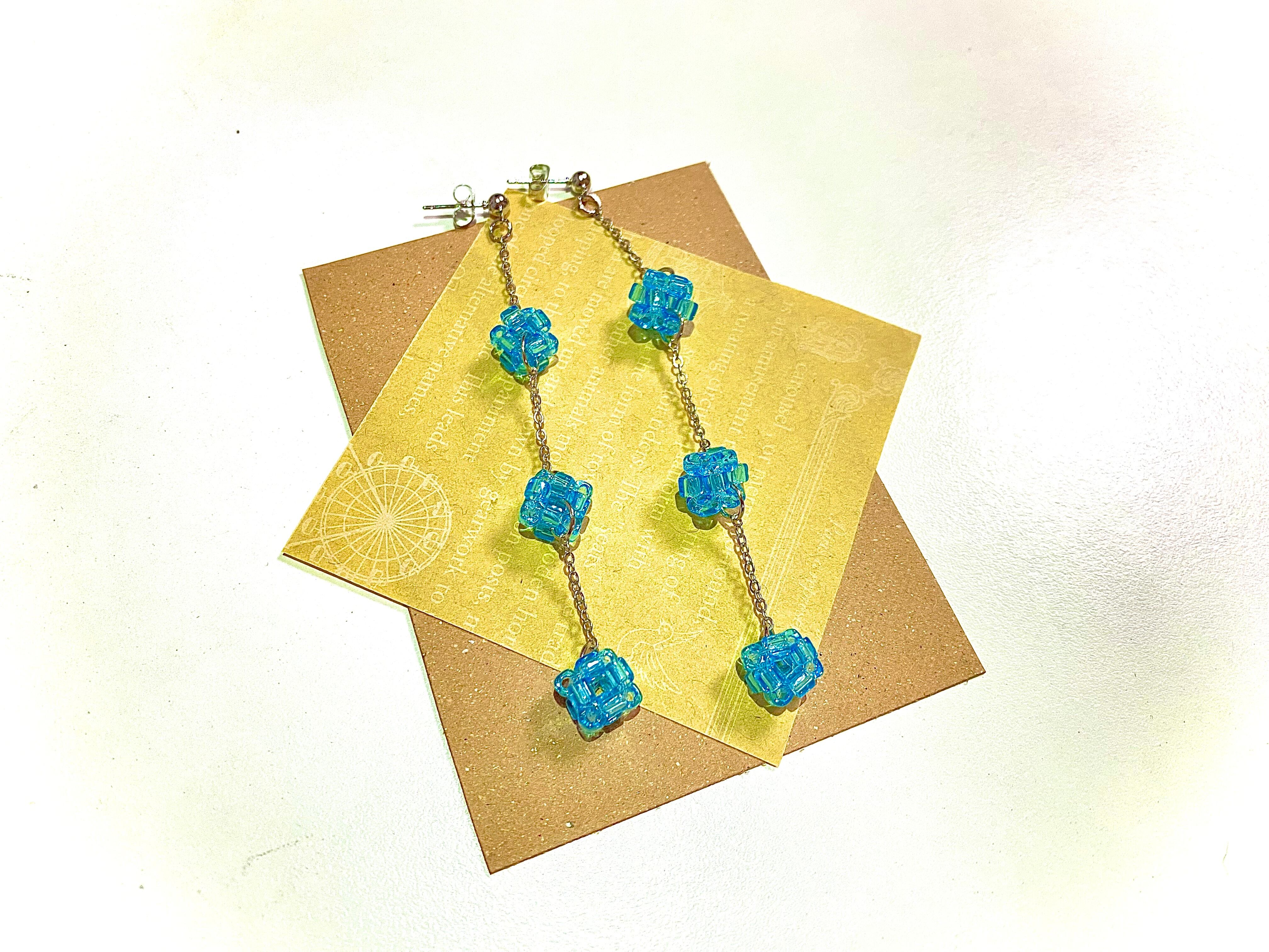 氷のような透き通った水色のビーズモチーフが涼しげで爽やかな耳元を演出してくれるピアスです。