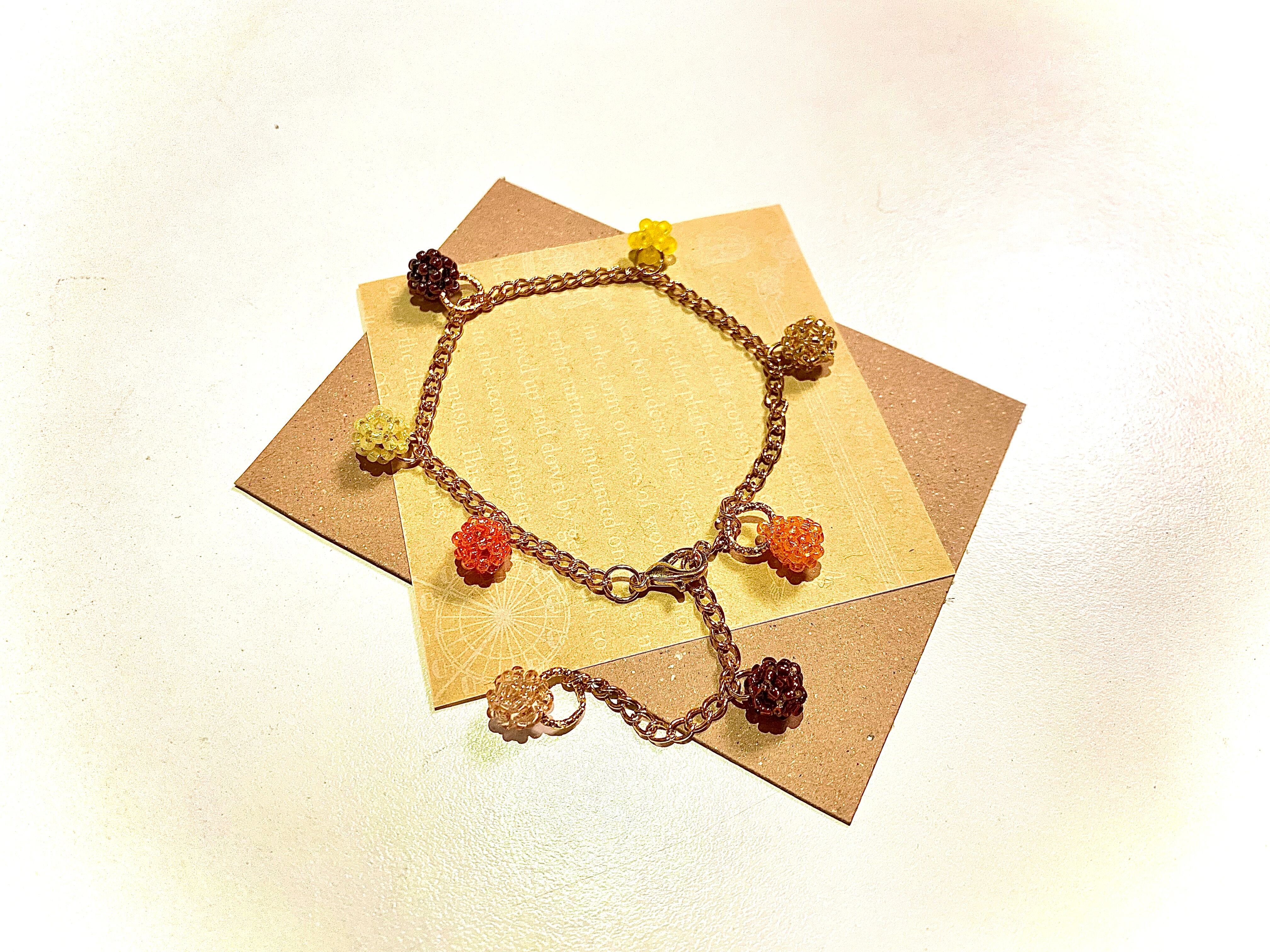 【ブレスレット】[ゴールド]ベリーのようなビーズモチーフのチェーンブレスレット(オレンジ)