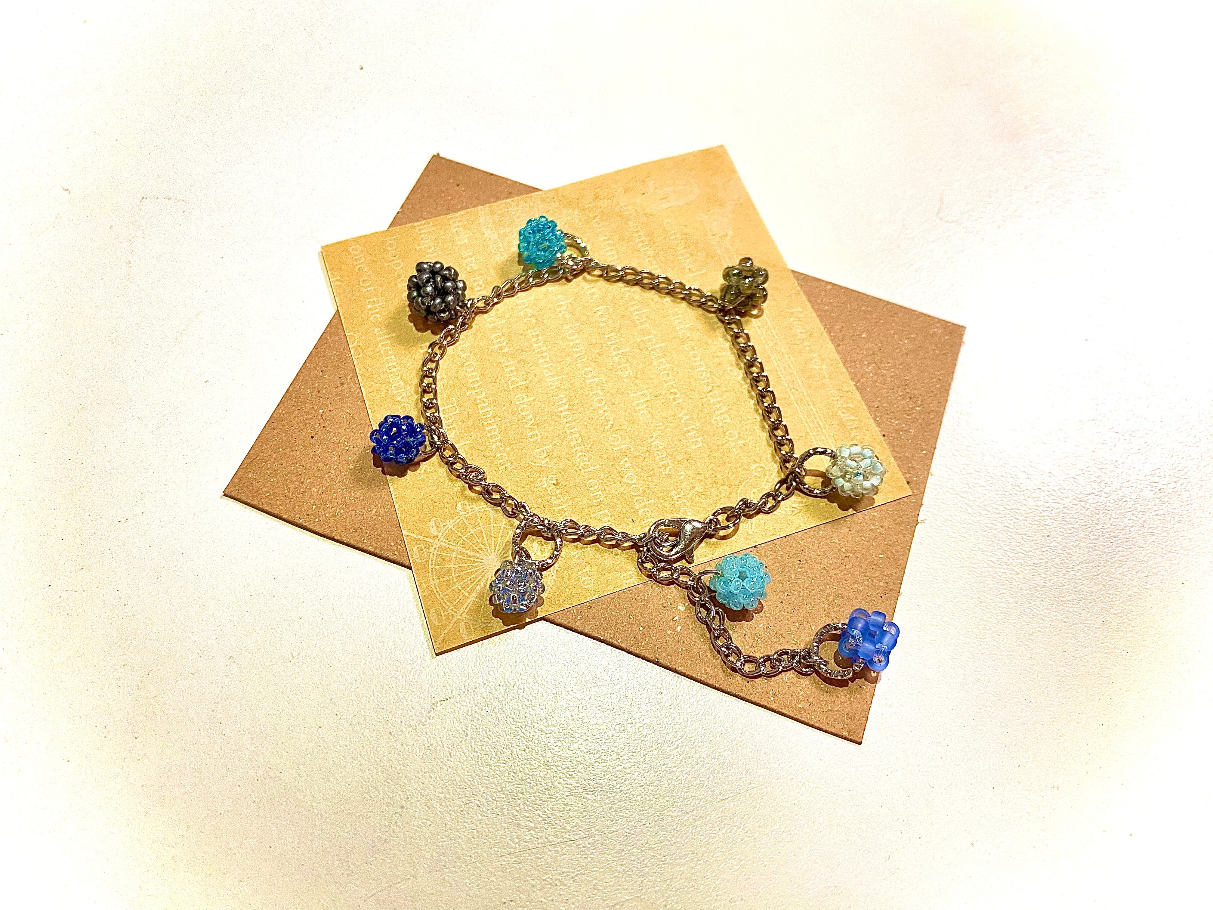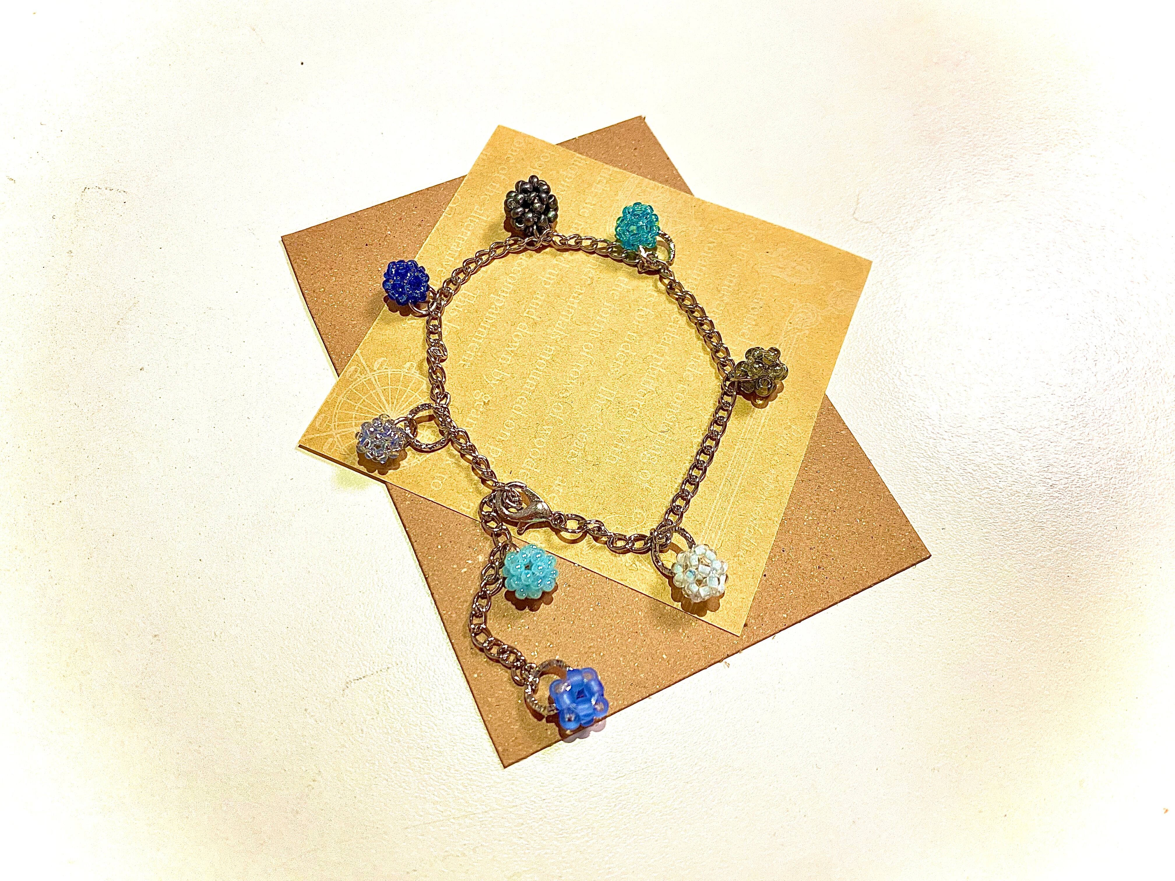 【ブレスレット】[シルバー]ベリーのような可愛いビーズモチーフ(ブルー)のチェーンブレスレット