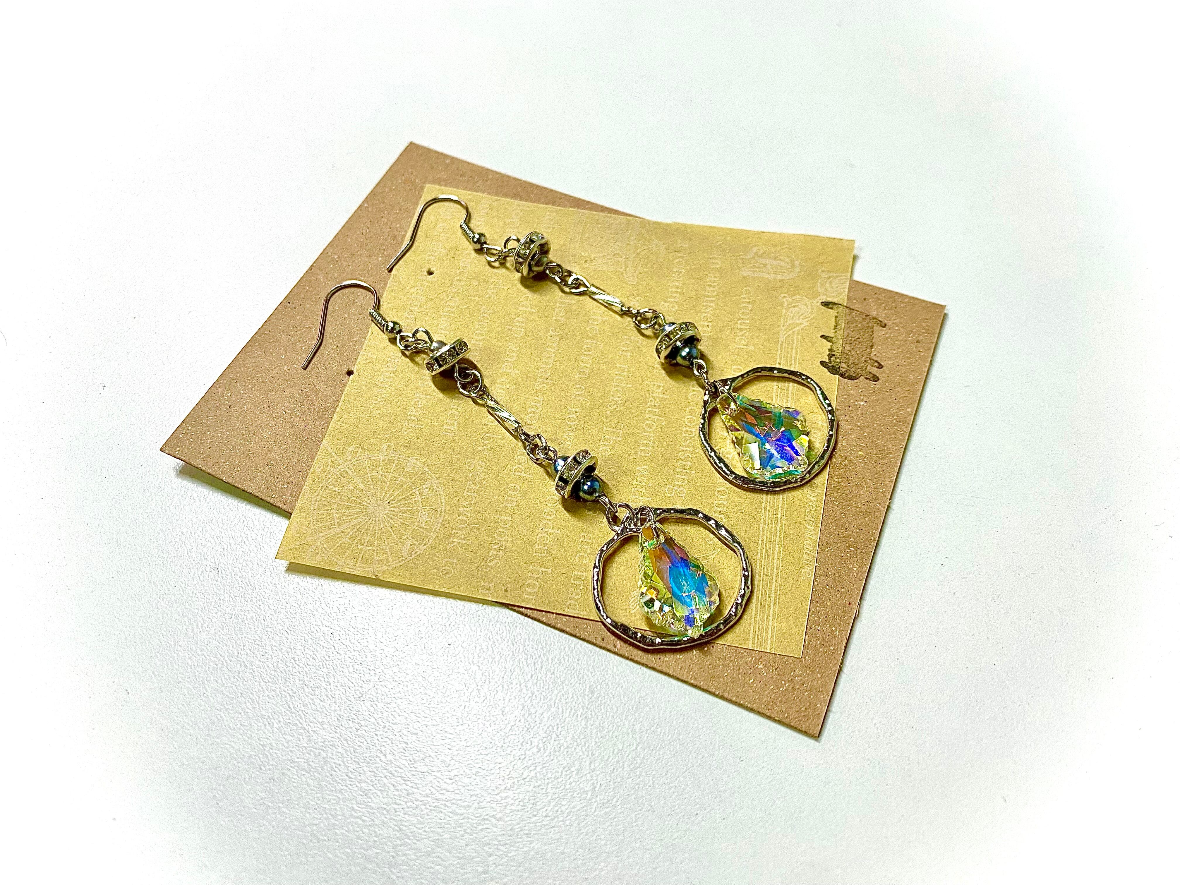 【ピアス】[シルバー]雫型オーロラクリスタルが輝くゆらゆらピアス