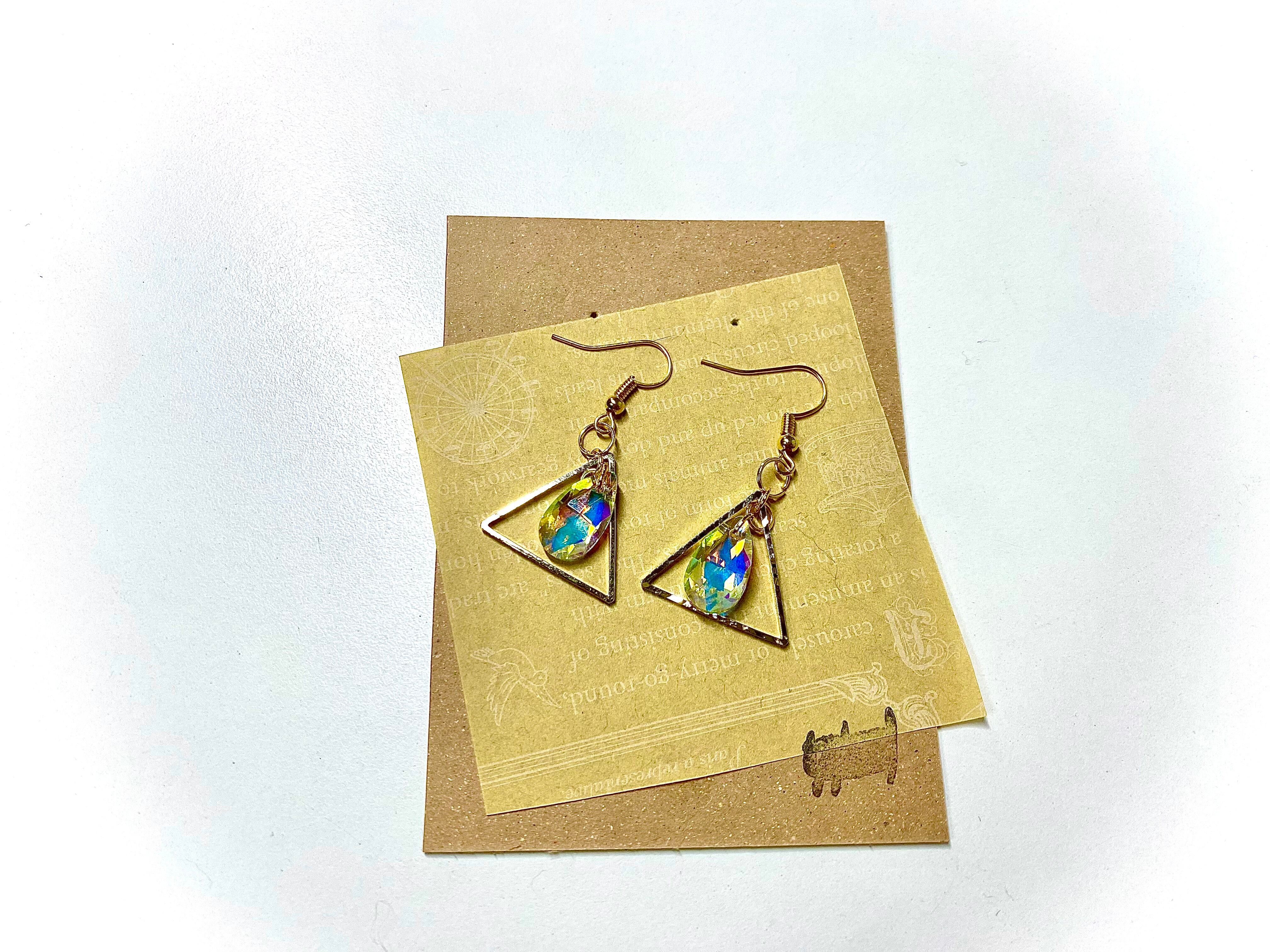 【ピアス】[ゴールド]雫型オーロラクリスタルと三角のゆらゆらピアス