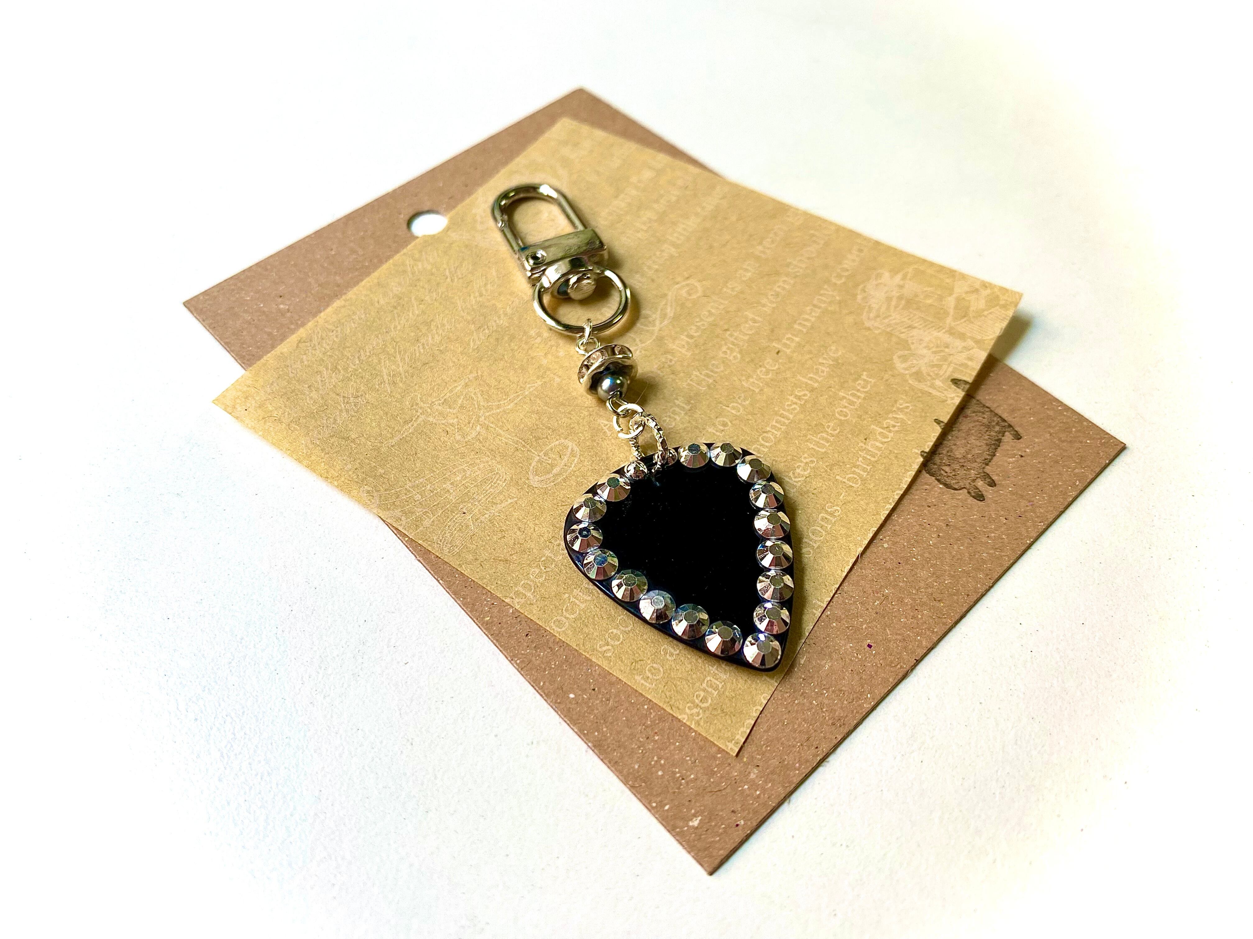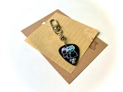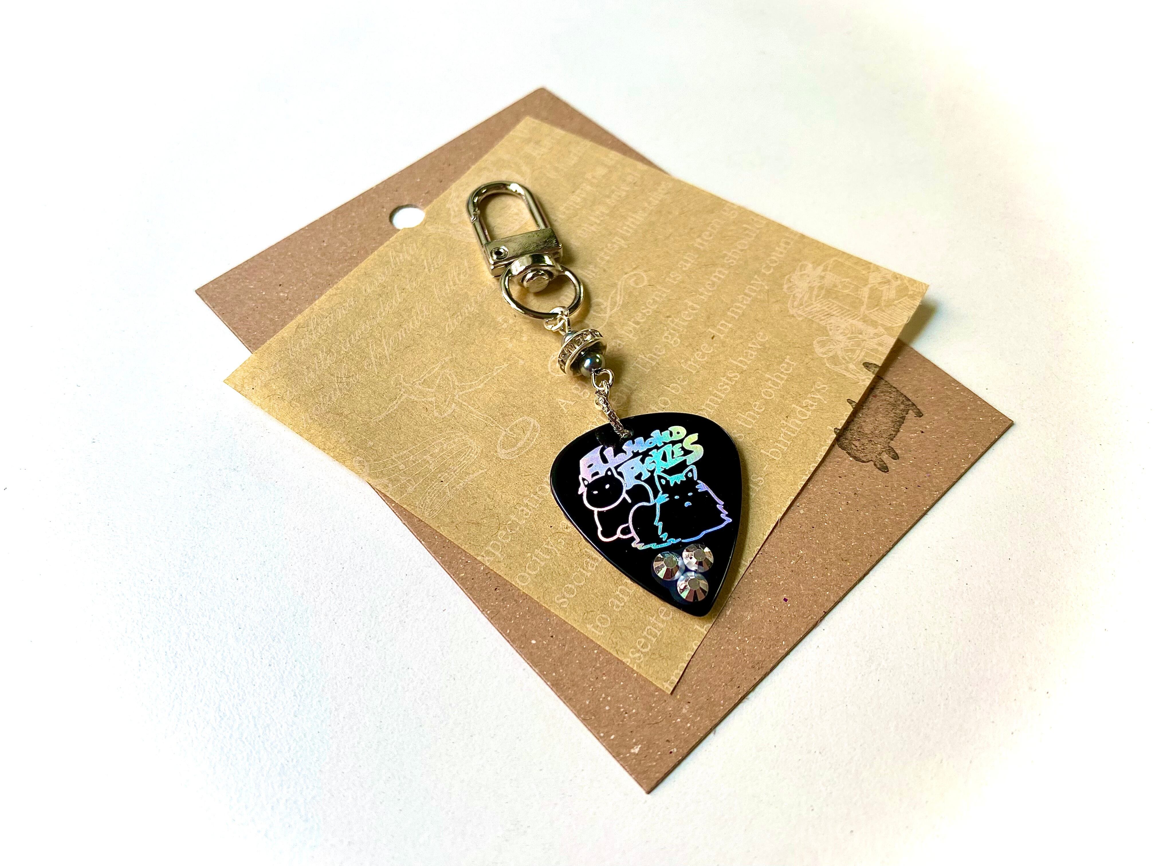 カラースタッズをあしらったオリジナルピックを使用したキーホルダーです。
