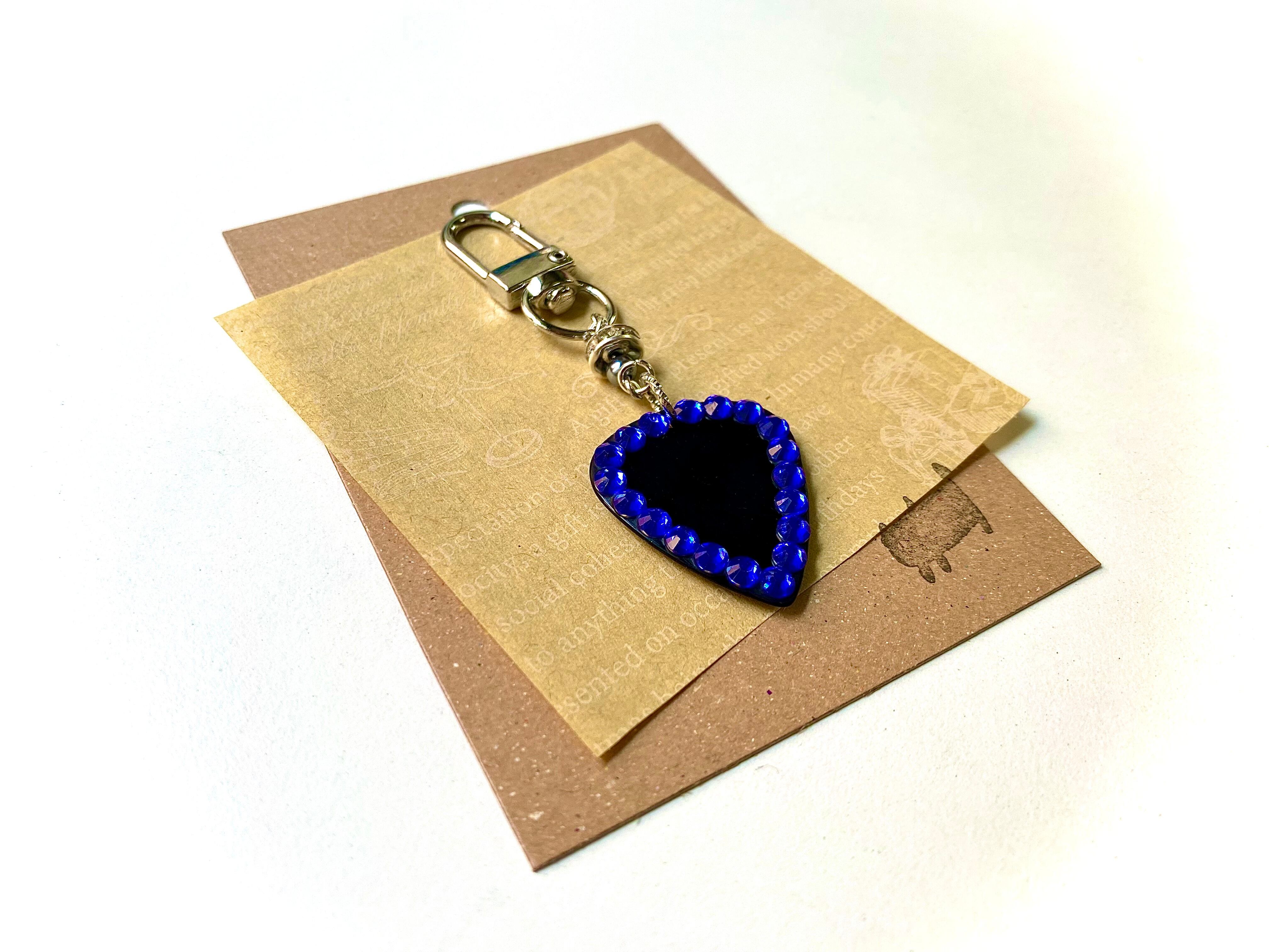 カラースタッズをあしらったオリジナルピックを使用したキーホルダーです。