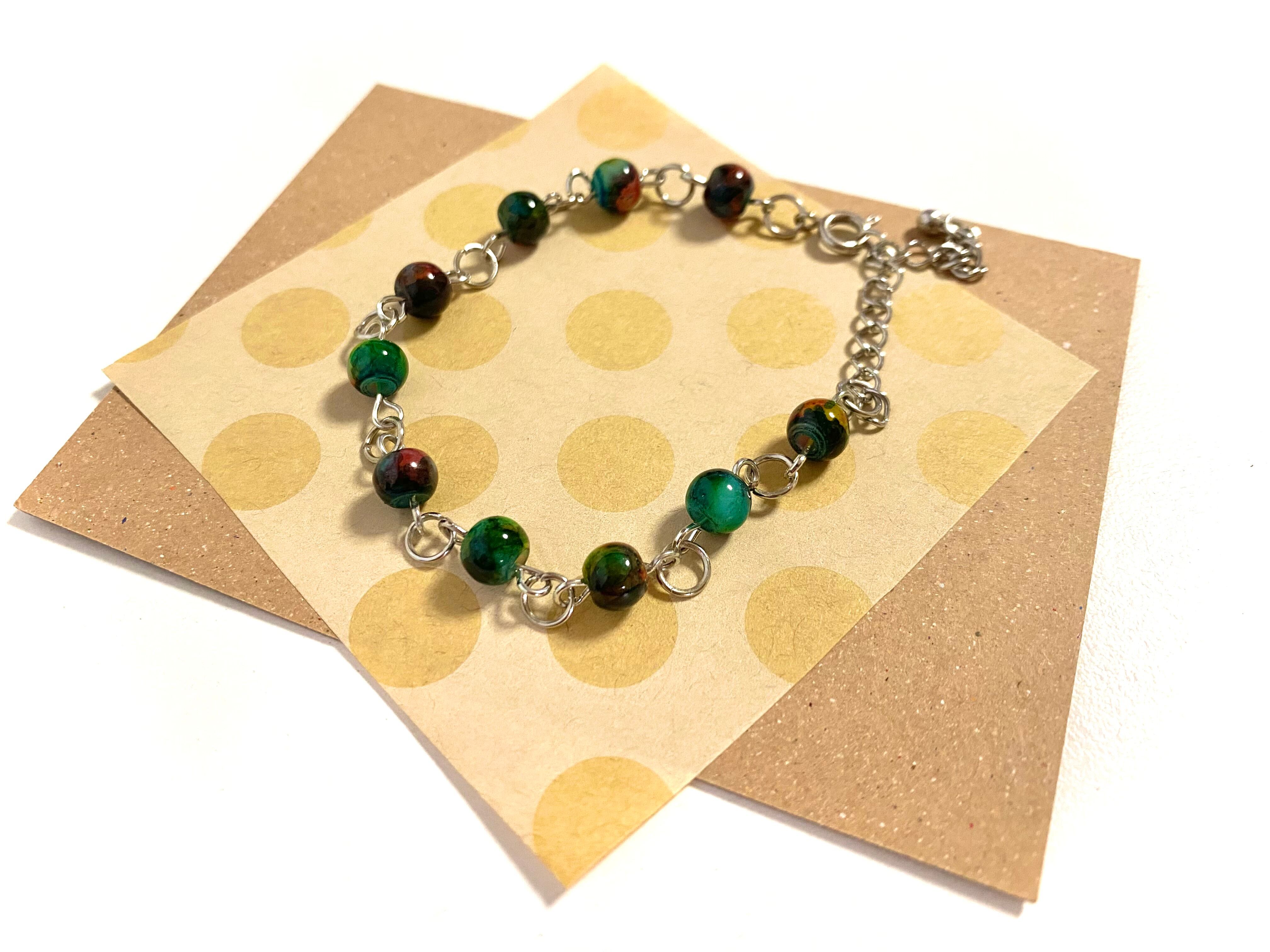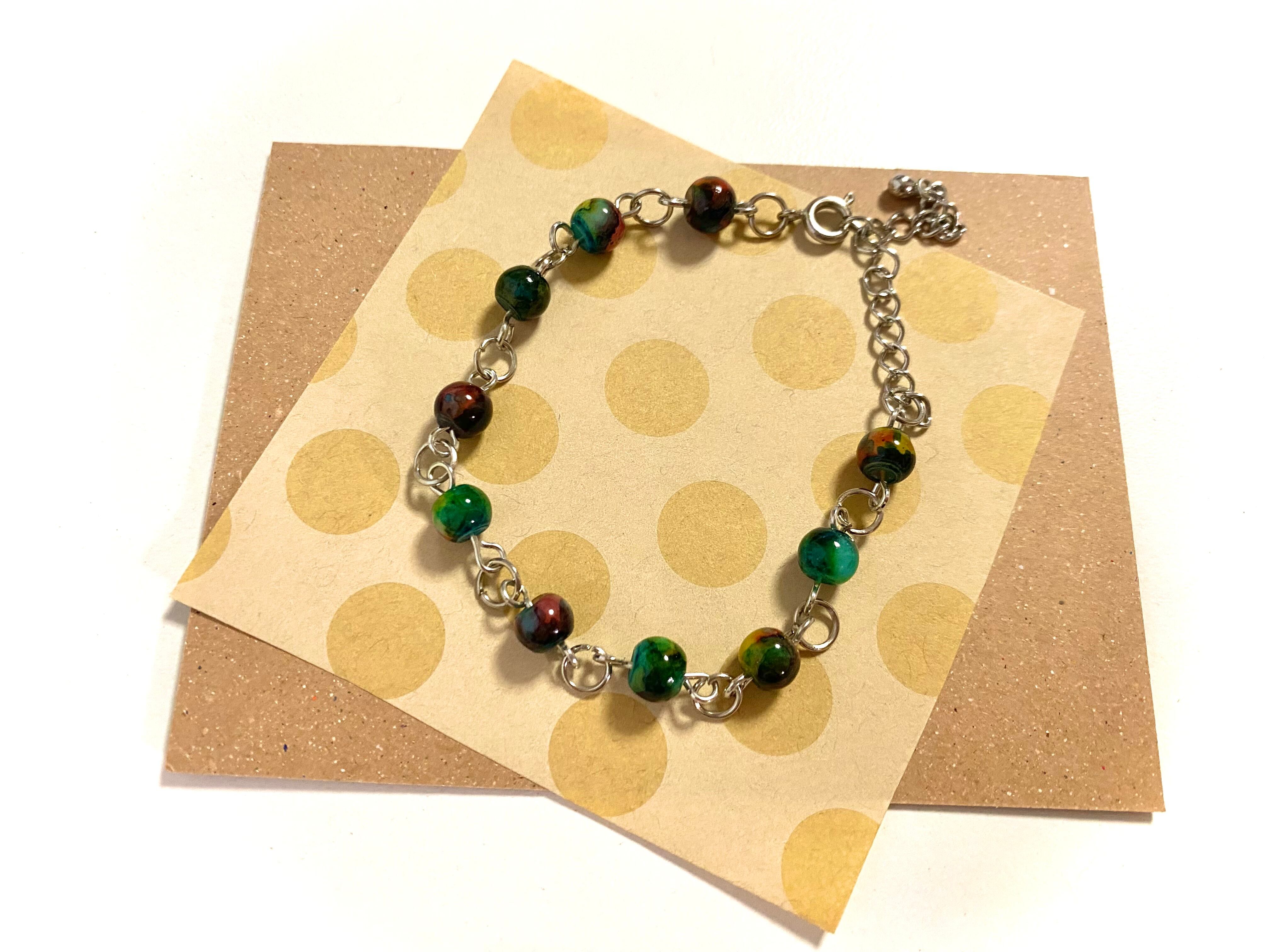 【ブレスレット】ガラス玉ビーズとチェーンのブレスレットC