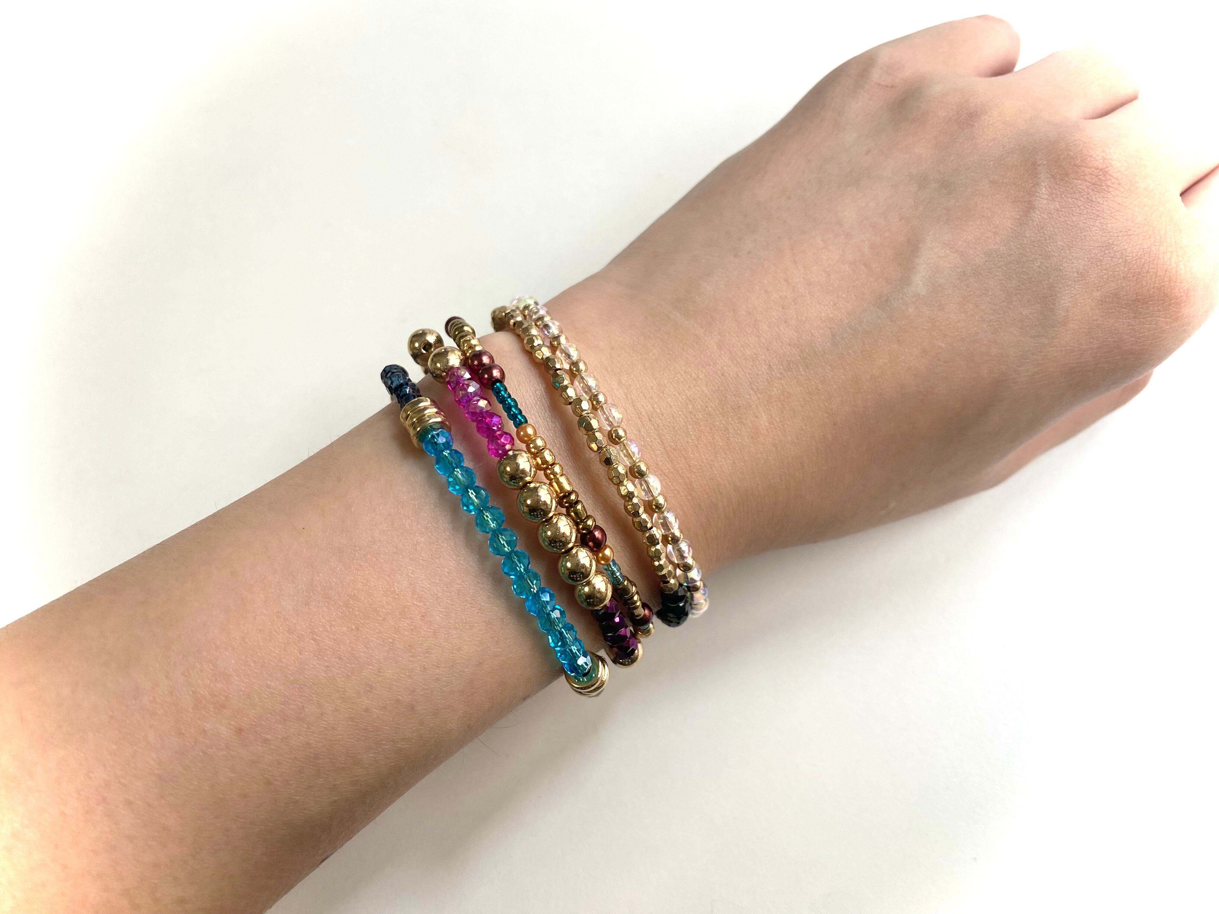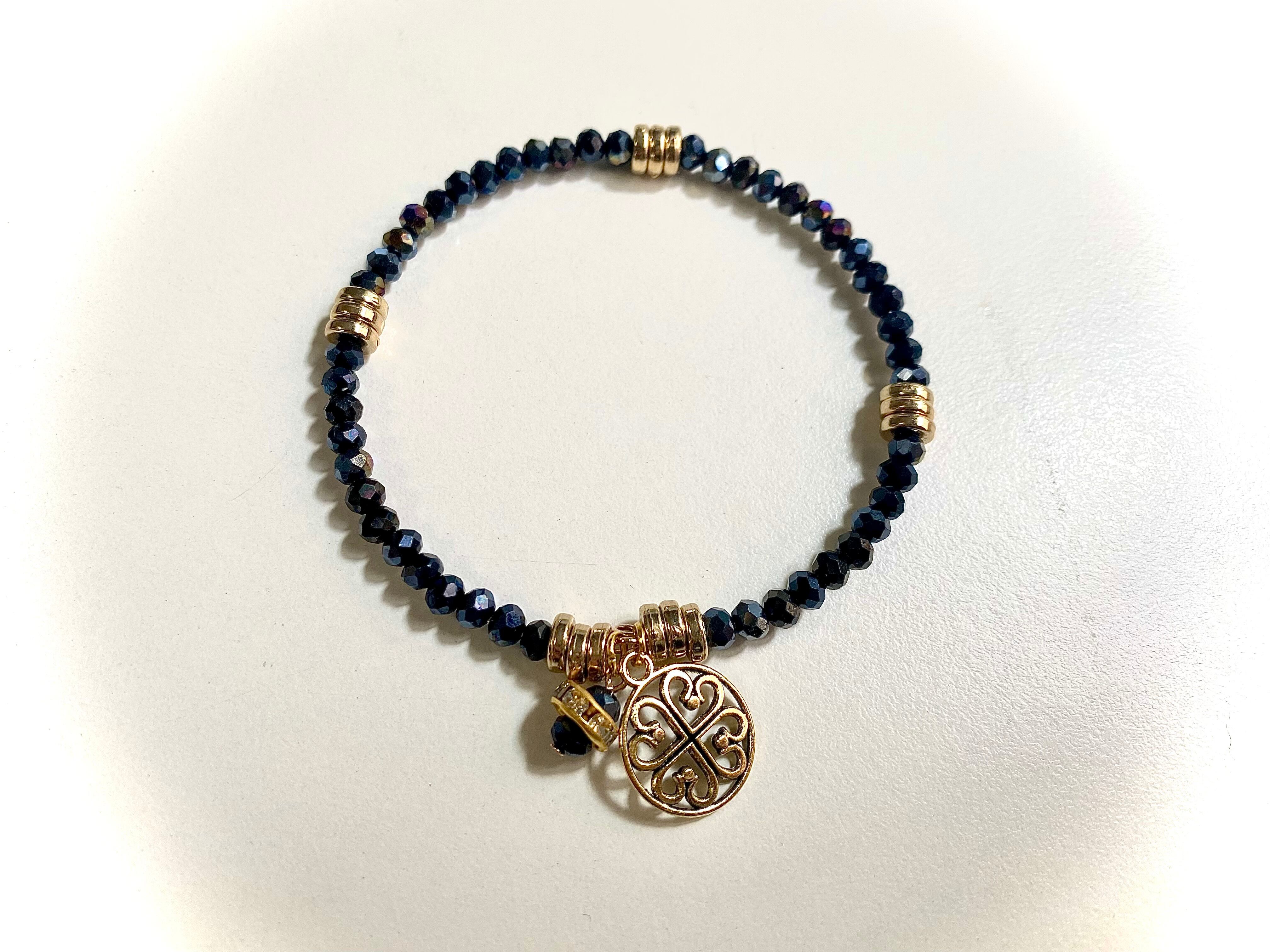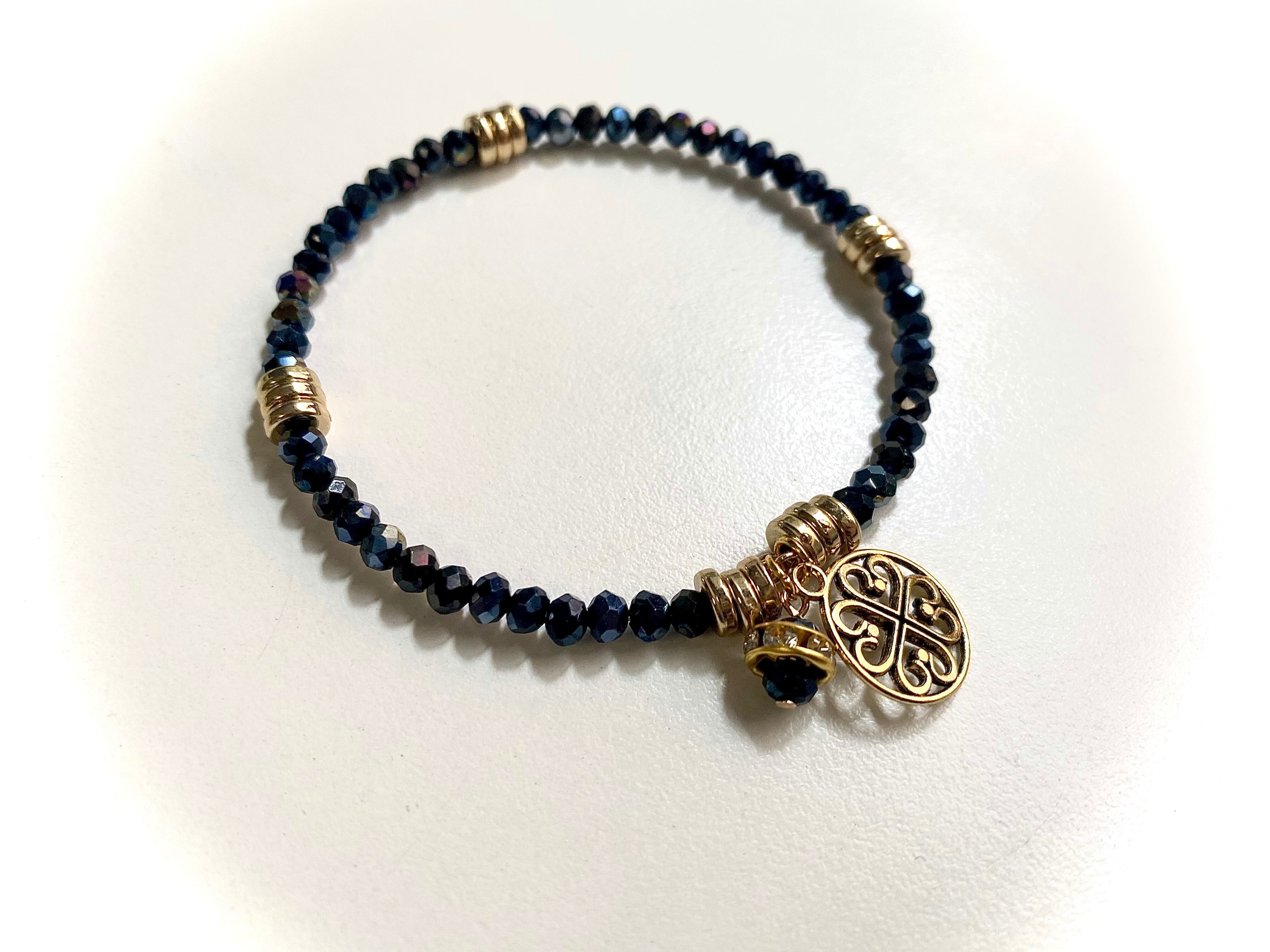 【ブレスレット】[重ね着けも!]ビーズブレスレット(ゴールド×ブラック1)