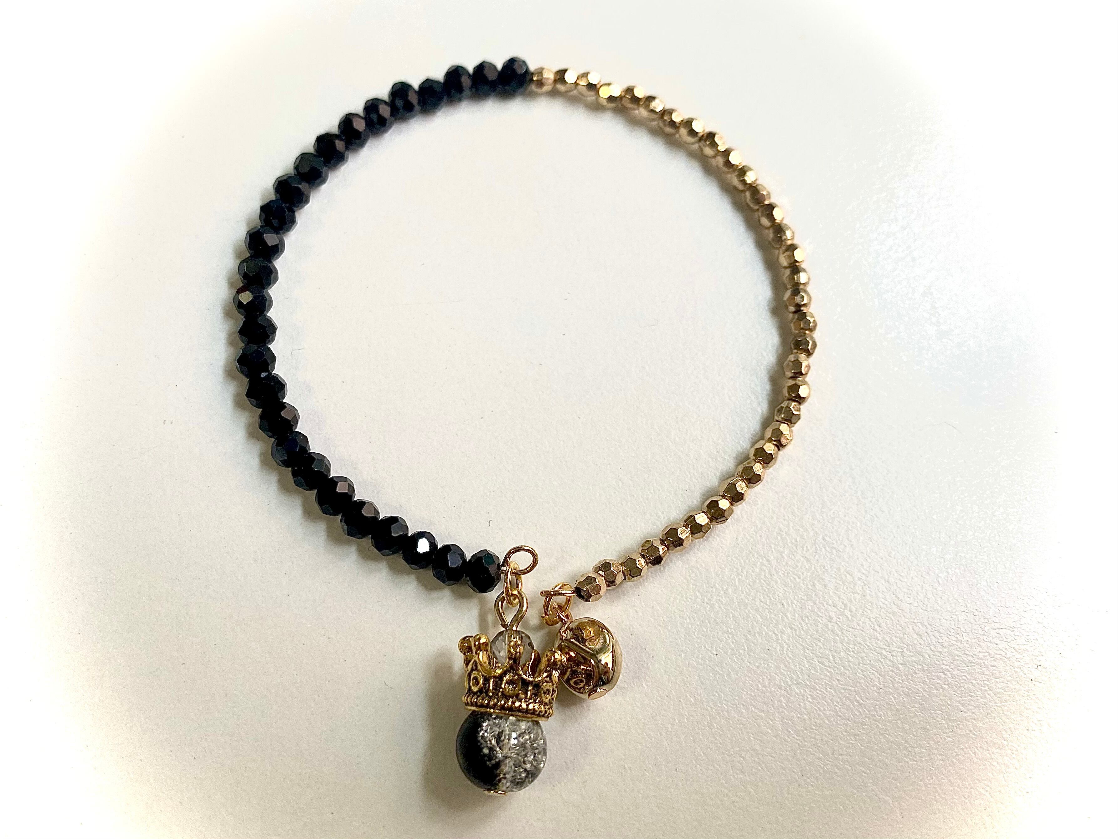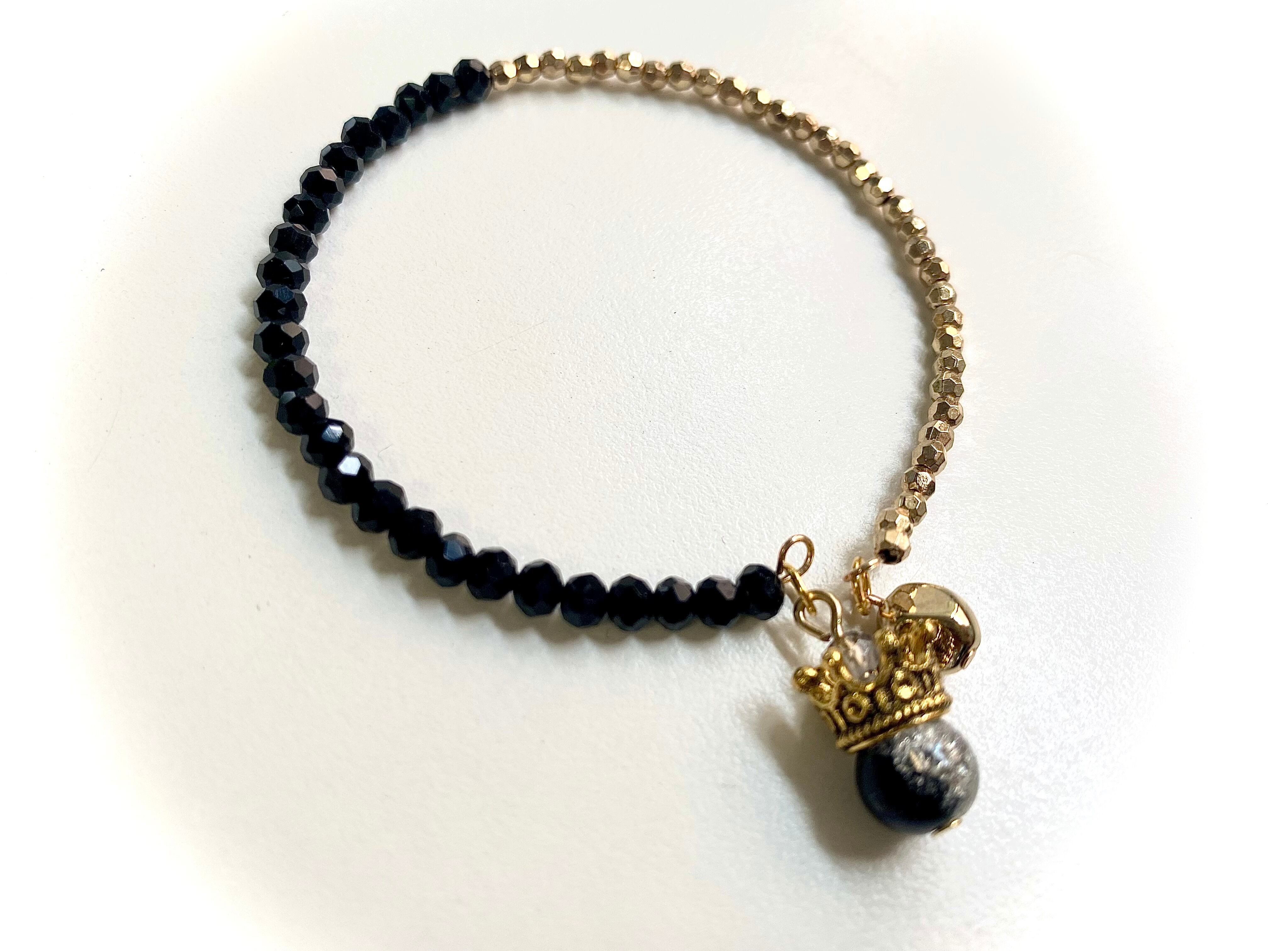 【ブレスレット】[重ね着けも!]ビーズブレスレット(ゴールド×ブラック2)