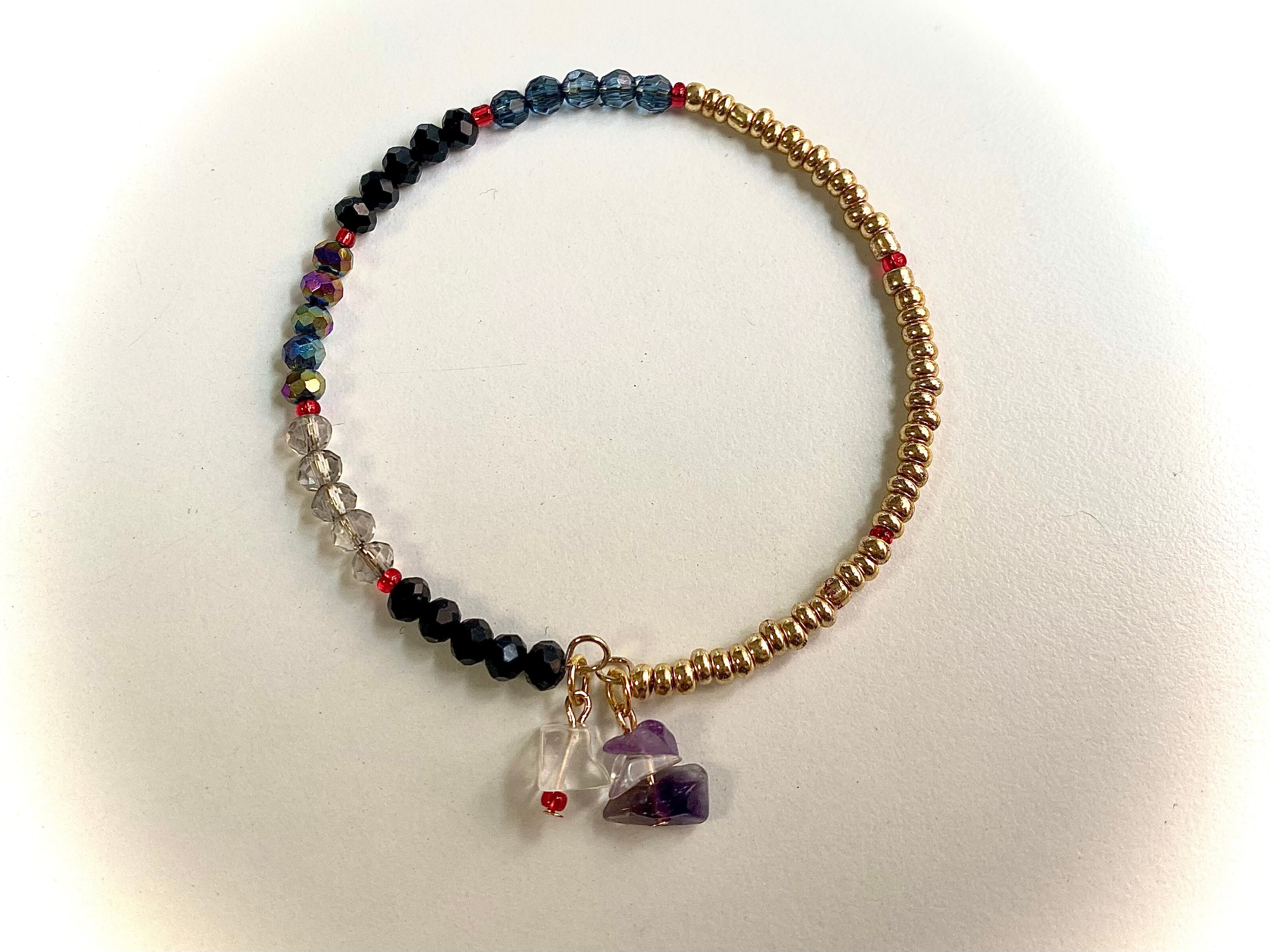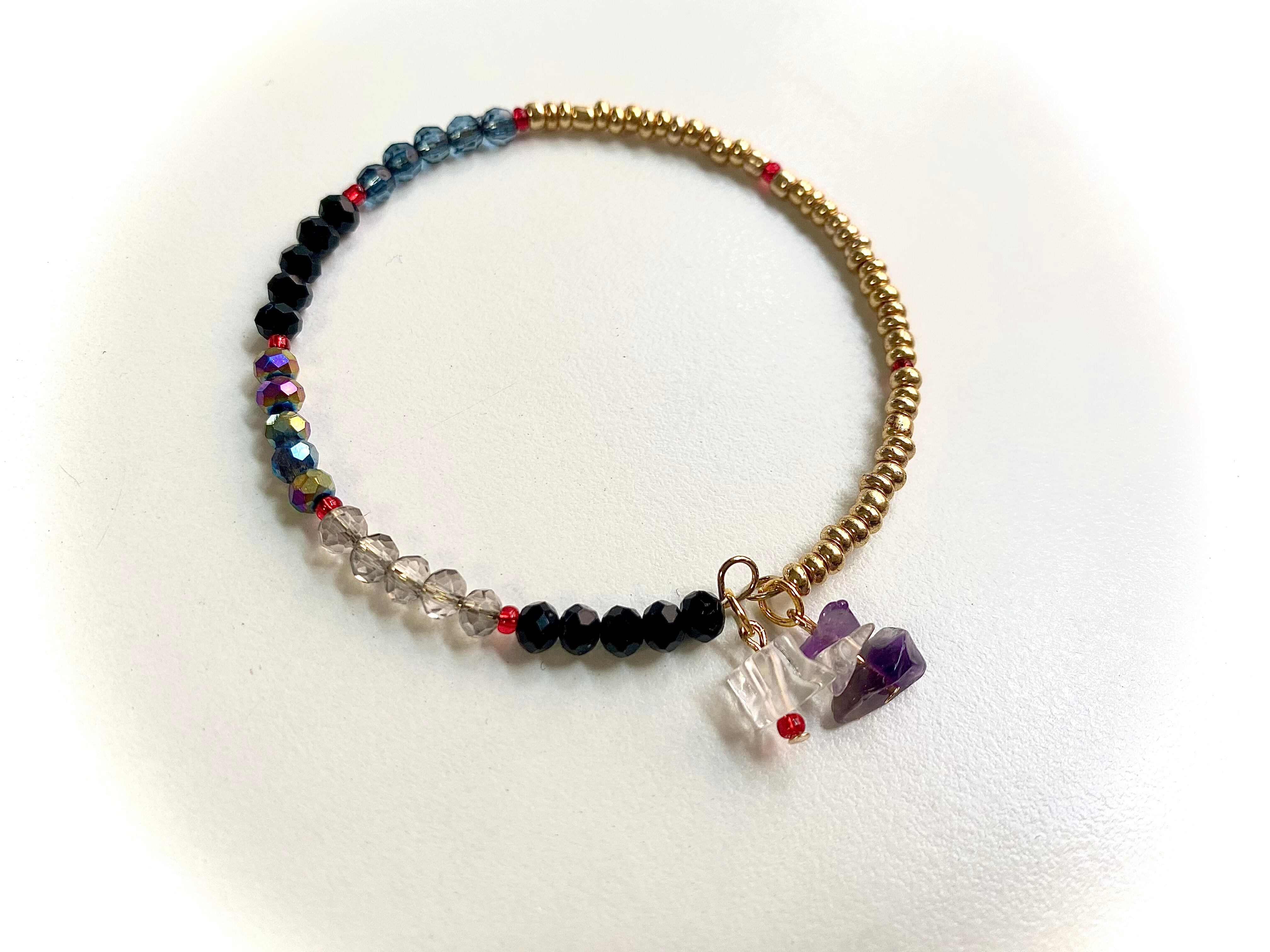 【ブレスレット】[重ね着けも!]ビーズブレスレット(ゴールド×ブラック3)